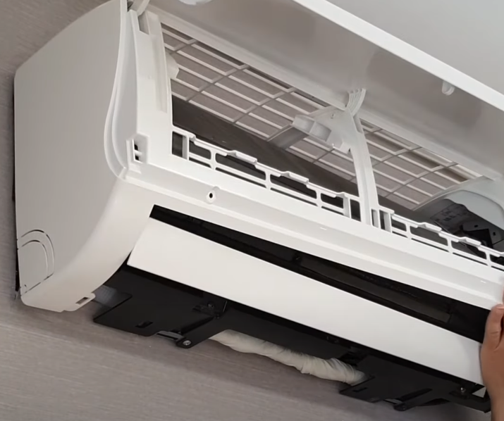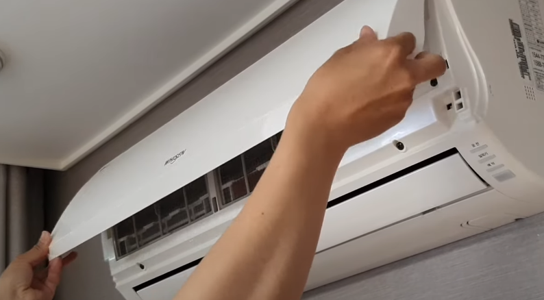 벽걸이 에어컨 청소방법 3. 하단 커버 분리, 판넬커버 분리