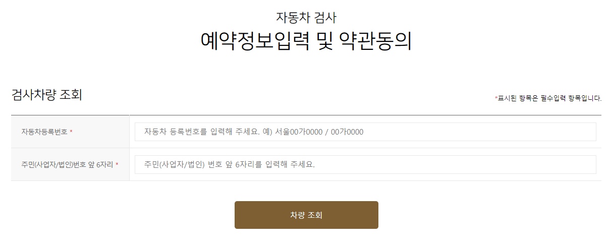 2. [자동차를 선택 → 자동차 번호와 생년월일 입력]