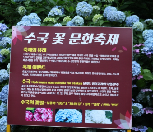 그동안 로나코로 인해 축제가 취소되었는데 올해부터는 수국축제가 다시 매년 6월말에서 7월초에 진행이 될것으로 기대됩니다.