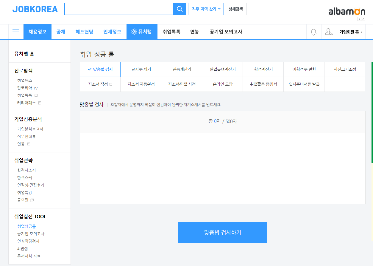 이력서 및 자기소개서의 맞춤법 검사로 잡코리아 취업툴을 사용해보세요.