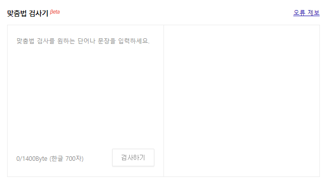 여기서는 한글 700자까지 검사를 진행할수 있고,’다음 맞춤법 검사기’로 검색하면 전용 홈페이지에 접속하여, 글자수 1000자까지 검사가 가능합니다. 전용홈페이지를 즐겨찾기 해놓고 사용하는 것을 추천드립니다.