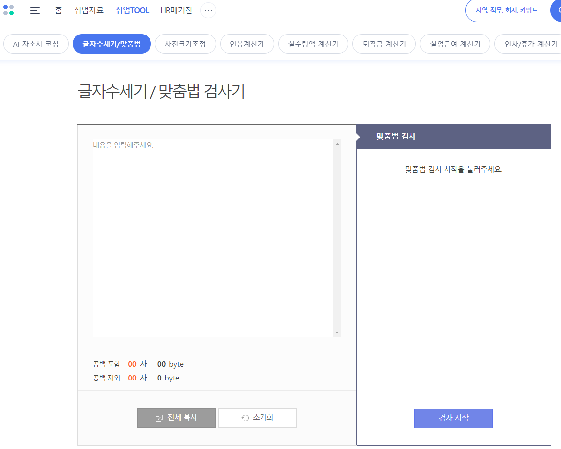 글자수 세기/맞춤법 검사기 | 이력서와 자기소개서의 글자수, 맟춤법을 확인 할 수 있는 검사기 - 사람인