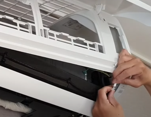 벽걸이 에어컨 청소방법 4. 바디커버 분리, 커넥터 제거