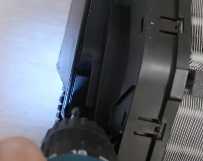 나사를 풀어주고 둥근팬 베어링을 제거 후, 냉각팬을 살짝 들어올려 둥근팬을 잡아당겨 꺼냅니다.